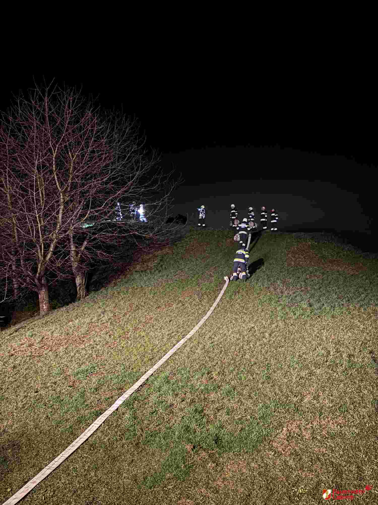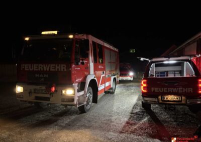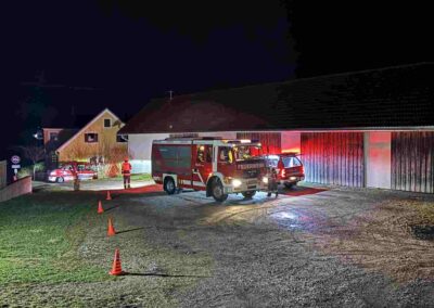 Zu Beginn der Übung wurde die Einsatzstelle ausgeleuchtet, um sichere Arbeitsbedingungen zu gewährleisten. Anschließend erfolgte das Herstellen mehrerer Löschleitungen, um eine ausreichende Wasserversorgung sicherzustellen.
