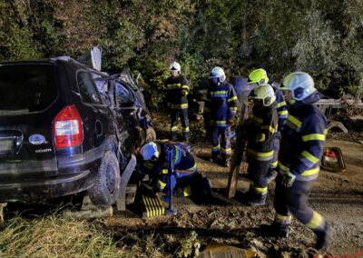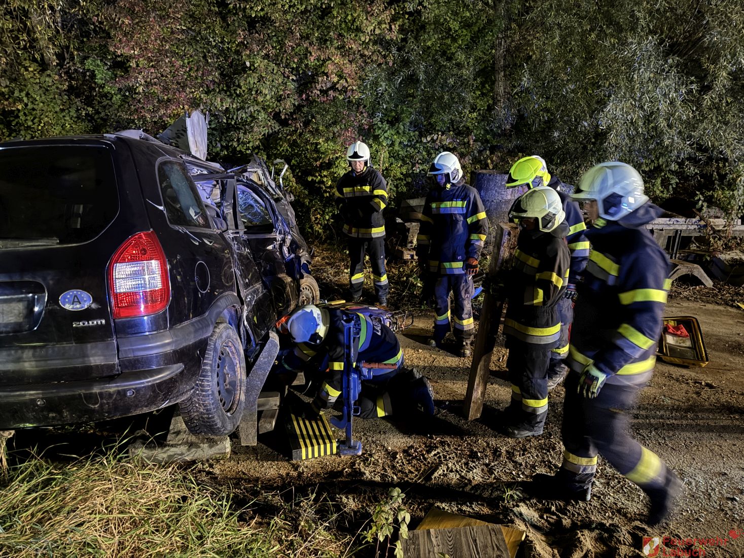 Nach der Lageerkundung durch den Einsatzleiter wurden umgehend die Fahrzeuge stabilisiert, die Unfallstelle abgesichert sowie der Brandschutz und die Beleuchtung der Einsatzstelle aufgebaut.