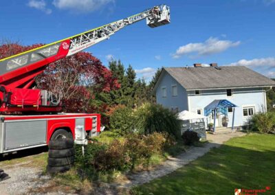 Unterstützung eines Imkers beim Einfangen eines Bienenschwarm im Bereich eines Kamines.